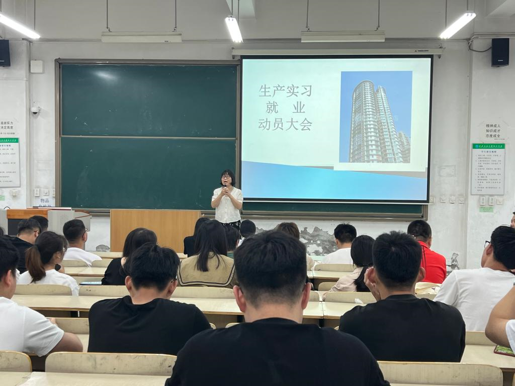 土建系牛彦龙老师给同学强调了生产实习关乎就业,一定要重视起来,生产实习要好好表现,维护自己、土建系、城院的形象,表现好的同学可能会直接在实习所在单位就业,牛老师再次强调安全的重要性,尤其是选择自主实习的同学,要每天向指导老师汇报位置、实习情况,最后希望每位同学能做到安全、高质量实习。最后,土木工程专业毕业生王晶同学代表全体毕业生与大家分享了个人就业心得。