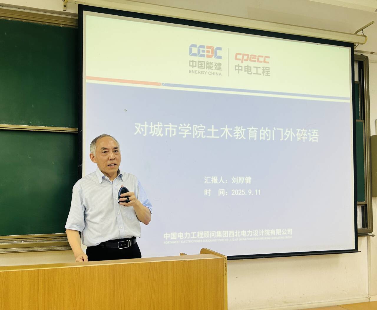 2025年9月11日下午,开云kaiyun官网开云kaiyun官网在教A303举行了一场别开生面的全国工程勘察设计大师工作室授牌仪式。开云官网客座教授、全国工程勘察设计大师、中国电力工程顾问集团西北电力设计院有限公司高级顾问、教授级高级工程师刘厚健教授,在给智建学院新生讲授第一堂专业概论“大师课堂”品牌课后举行。校领导朱旭副校长,校长助理、行政人事部部长姬志国、智建学院院长廖红建及师生代表出席仪式,共同见证这一时刻。这是我院践行学校双师共育、深化产教融合、推进校地合作和产学研的重要举措。