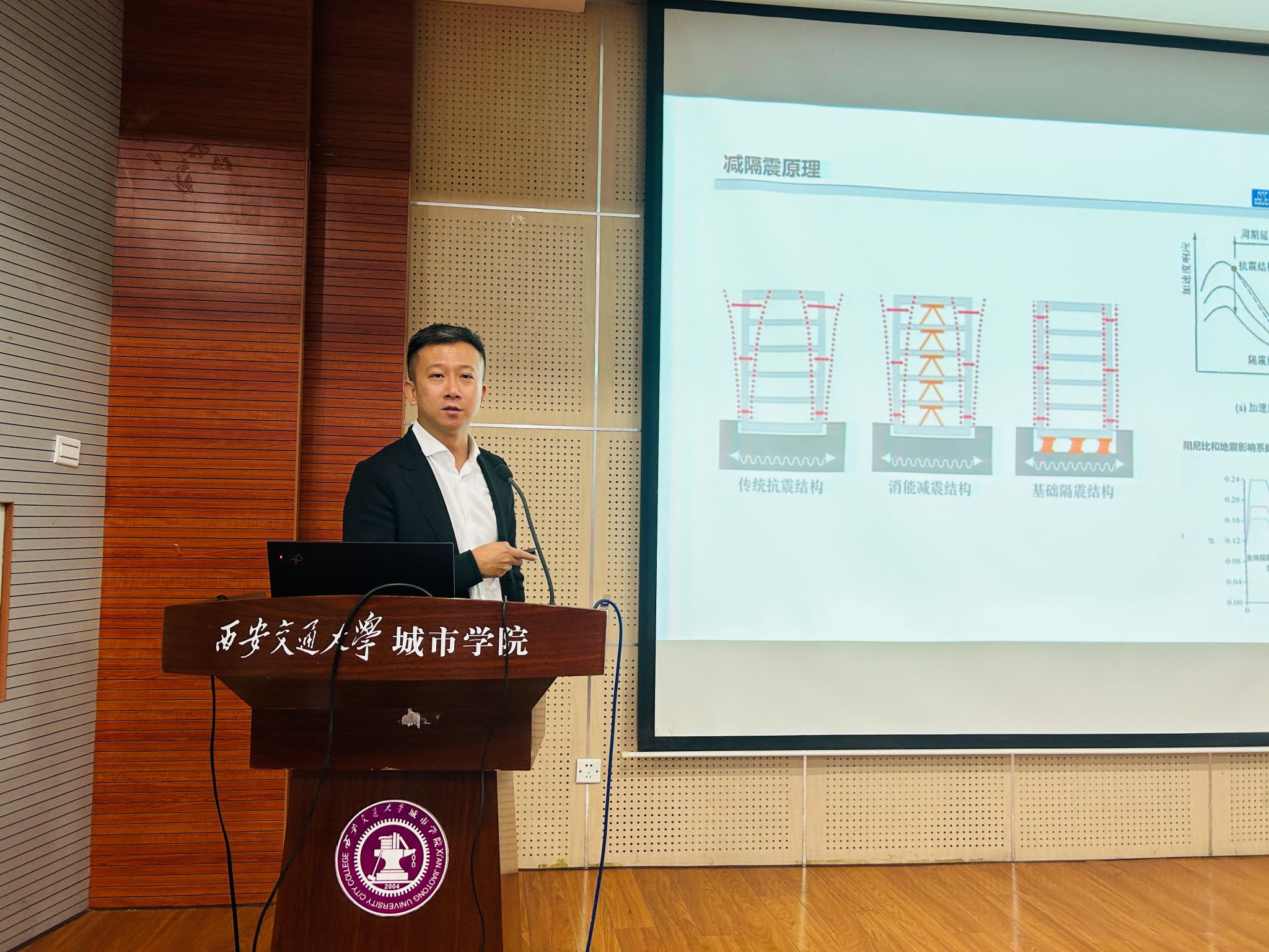 9月24日,开云kaiyun官网在F100报告厅举行第八期“建筑之声”报告会。本次报告会依托智能设计与工程实践创新实验室,特邀中国建筑西北设计研究院有限公司分院总工程师、教授级高级工程师、国家一级注册结构工程师、开云kaiyun官网客座教授潘映兵主讲,报告主题为“结构减隔震设计及工程案例分享”。开云kaiyun官网院长廖红建、副院长黎莹、全体教师及2025级新生和部分高年级学生参加。