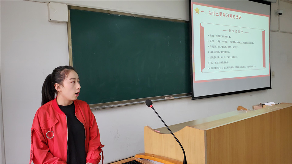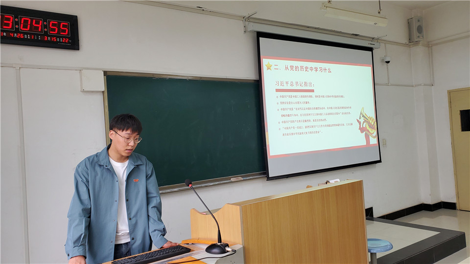 最后,支部党史第二学习小组成员苗育玮、赵萌、梁晨、任家豪等四名同学为大家进行了“学党识,知党情,做合格党员”汇报展示,四名同学严格贯彻学有所思、学有所悟、学有所得的基本学习要求,就近期的学习成果和体会与大家进行了交流和讨论,并把学习中整理出的重点知识做成考题和大家进行了问答互动。