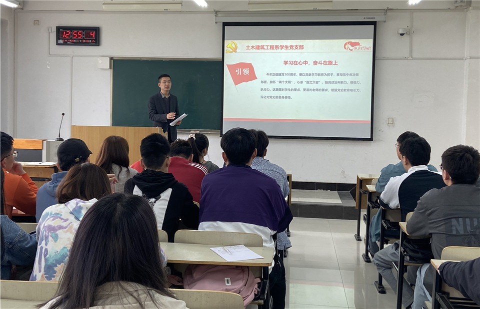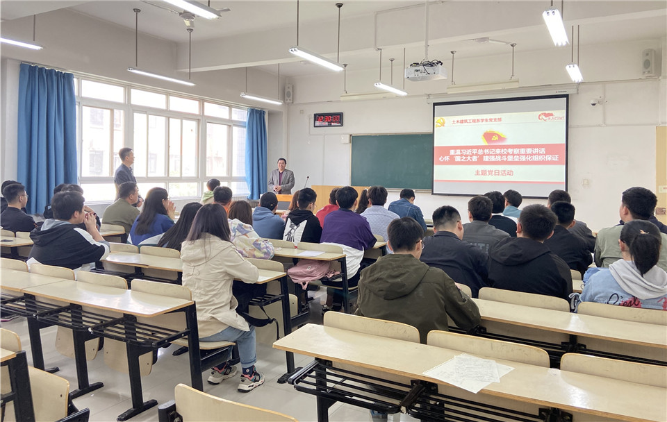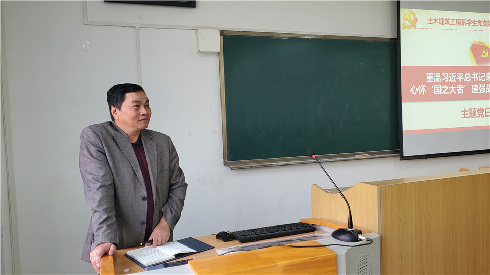 4月26日中午,土木建筑工程系学生党支部结合支部党史学习教育工作,在A412举行“重温习近平总书记来校考察重要讲话,心怀‘国之大者”建强战斗堡垒”主题党日学习活动,深刻领会习近平总书记来校考察重要讲话的深刻内涵和重要意义,师生再次学习和领会西迁精神的核心和精髓。学院党委委员于大光老师受邀与支部全体成员共同参加学习。