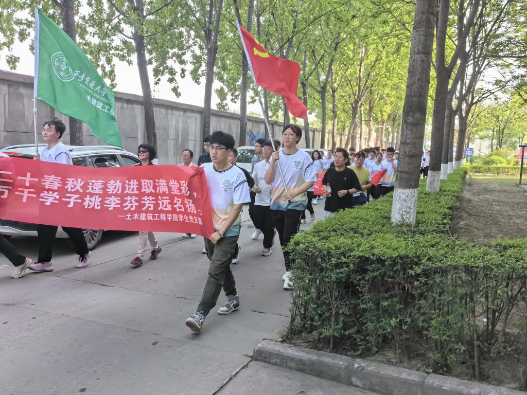 最后,随着起跑哨声的响起,老师和同学们如同离弦之箭般冲出起点,在校园优美的大道上每一位师生都以饱满的热情和乐观的精神,奋力向前。“尚德笃学,守正创新;城院学子,勇攀高峰”的口号声铿锵有力,响彻校园,形成了一道美丽的风景线。彰显了土建学院的精气神。