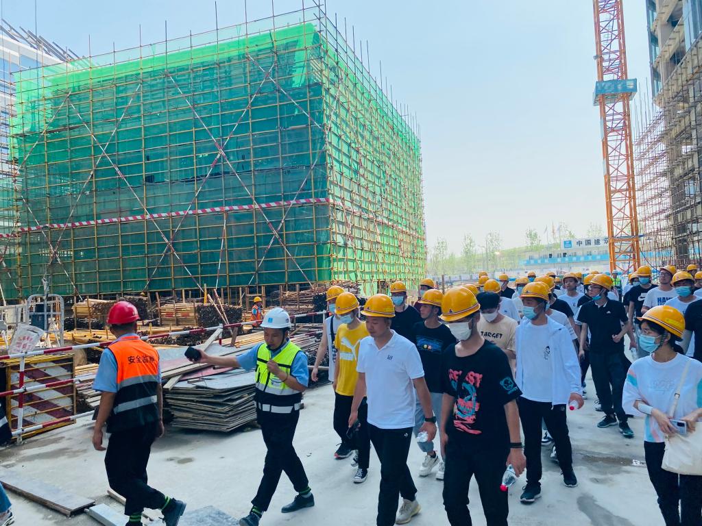 炎炎烈日没有抵挡住大家参观工地现场的热情,7月9日早上土建系组织学生前往绿地丝路全球贸易港进行集中现场参观。中建新疆建工(集团)西北公司技术总工张明向同学们进行了项目介绍,该项目是全运会主场馆项目之一,主体为钢结构装配式,施工工艺先进,施工难度大,是绿地集团的样板工程。为了保障参观安全和学习质量,全体学生分成两组,每组80人分批进入工地。通过现场的直观展示和技术员详细的讲解,使得学生将课本上的二维图片与现场的三维实物相对应,加深了之前所学专业知识的认识和理解,让课本上的知识变得更加直观和具体,实现了理论结合实际的目的。