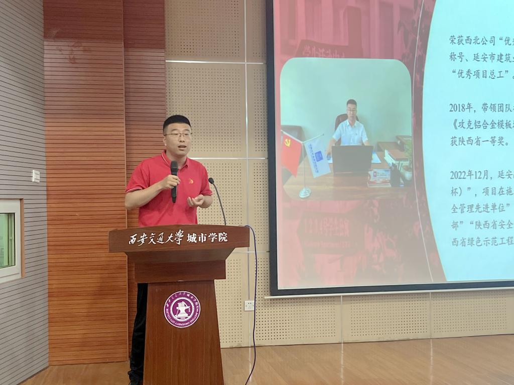 中建新疆建工西北公司项目党支部书记、项目总工、2016届校友刘玮从行业的特性、发展趋势以及个人成长等方面展开介绍,鼓励学弟学妹扎实掌握土建专业的基础知识和技能,注重理论与实践相结合,多参与实际工程项目,将所学知识运用到实际工作中。