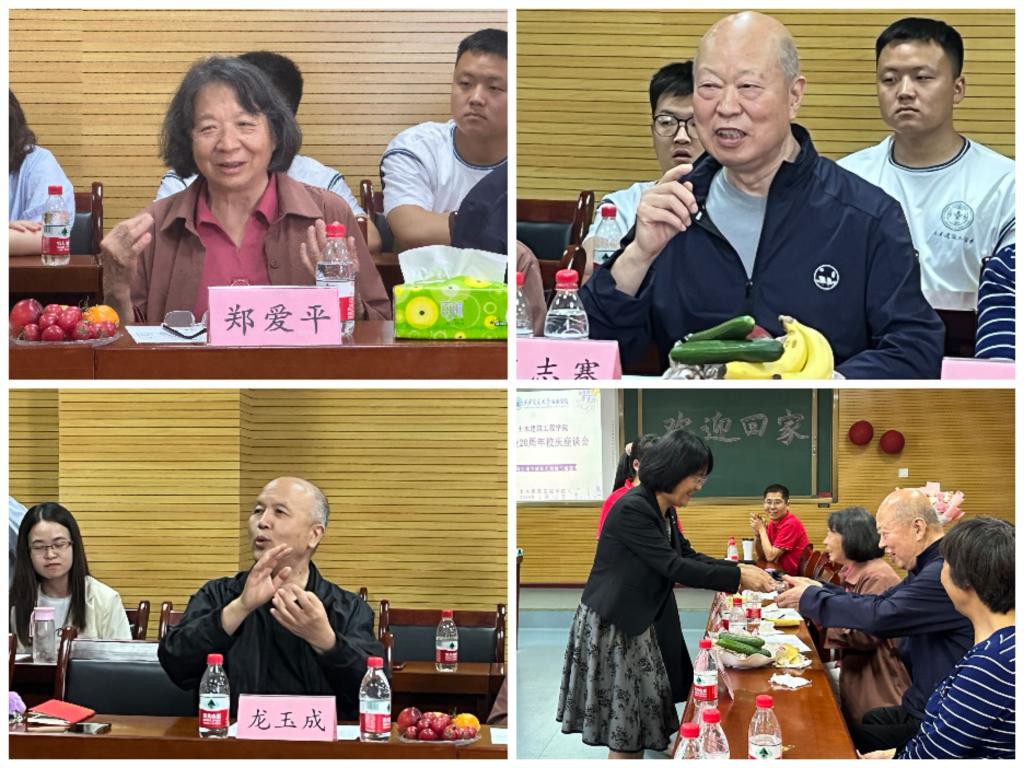 在座的老教师们深情回顾了土建学院初期的奋斗史,表达了对学校的深厚情感。并对在座的校友、教师及青年学子表示祝福,希望他们珍惜当下,共同推动土建学院的发展。