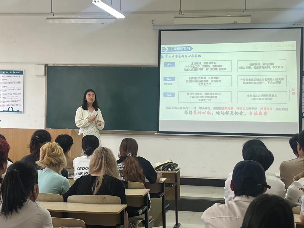 两位同学就学习方法及大学生活经验进行了分享。他们鼓励同学们要敢于去尝试,大学有很多机会去展现自己,要勇敢地去尝试一切,结果并不重要。只要尝试了,便是一次新的进步。