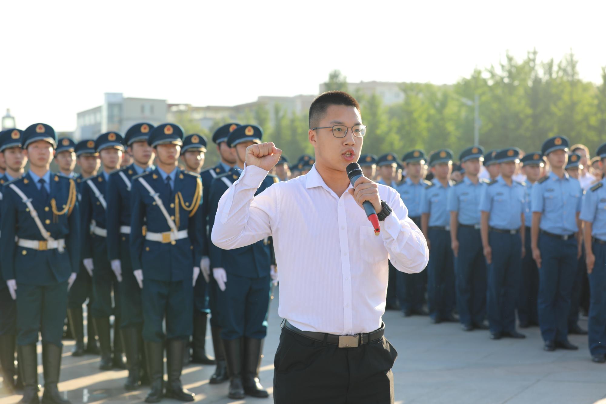 面向党旗,向党做出庄严的承诺。上千名师生党员宣誓声在礼仪广场上空久久回荡。