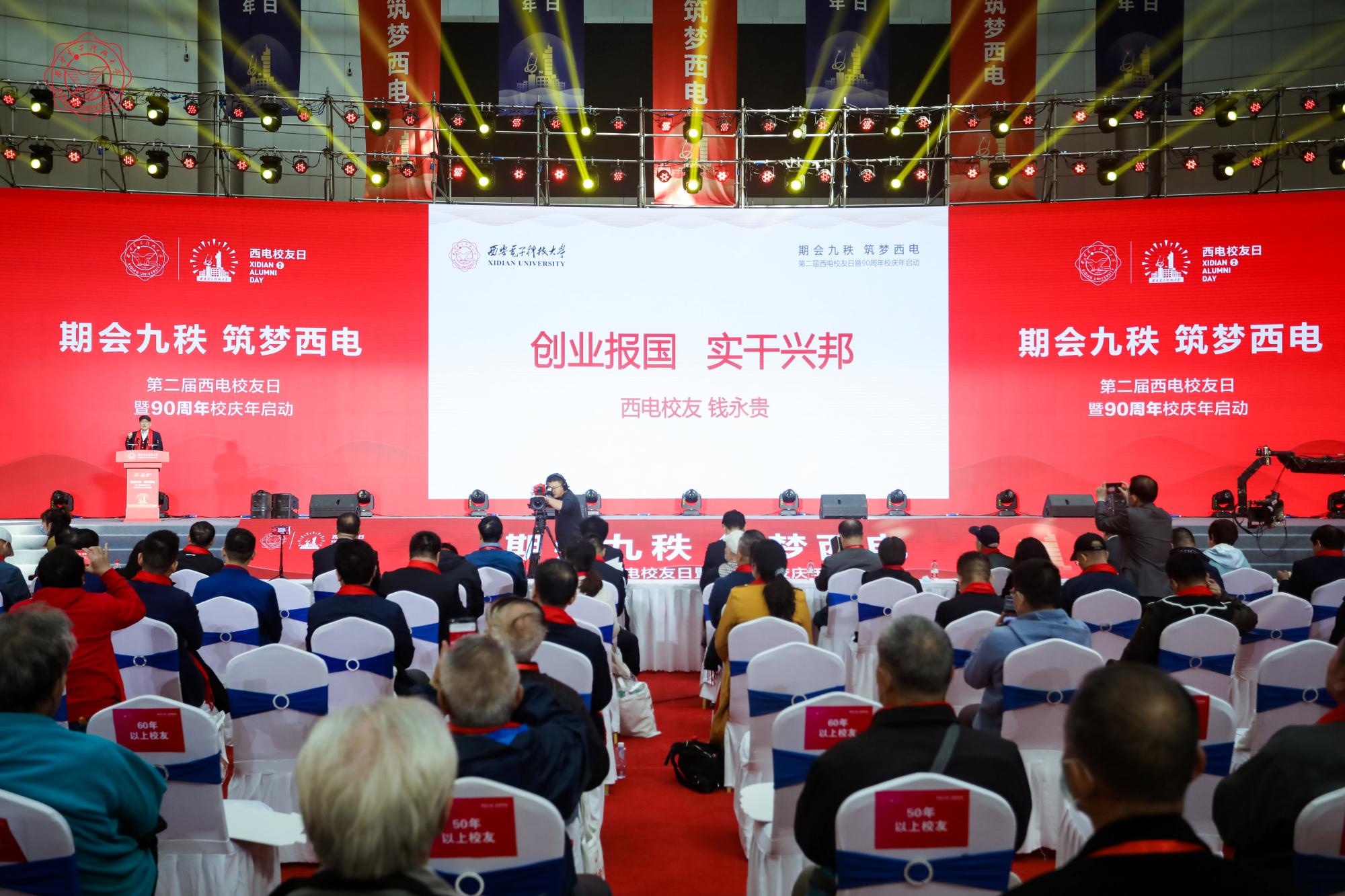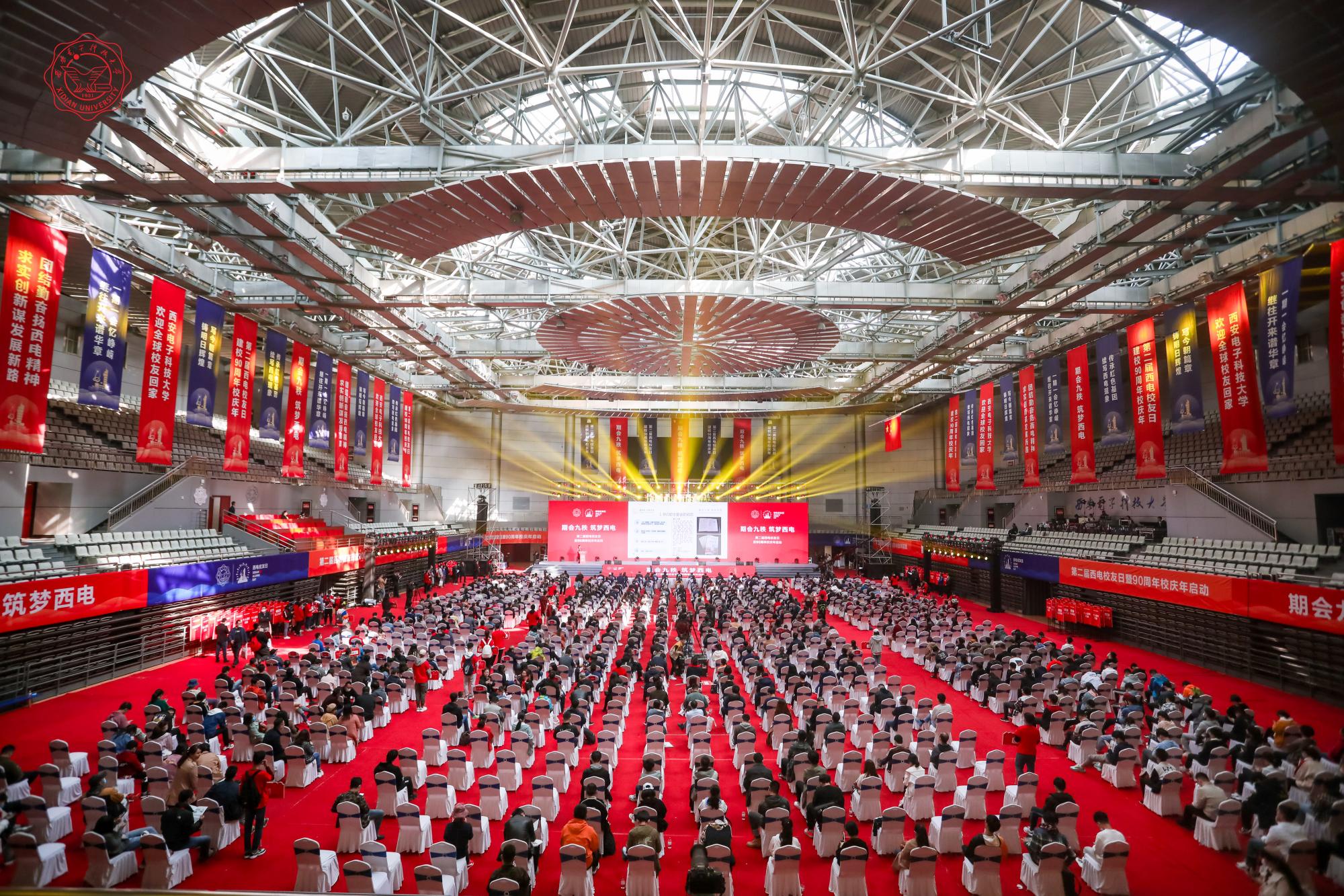 大会在热情洋溢的表演《再回西电》中拉开帷幕,全球各校友会会长、秘书长及校友代表,学校各部门、各学院负责人,教师代表,学生代表以及社会各界人士代表近600人相聚远望谷,共话母校情,同启校庆年。