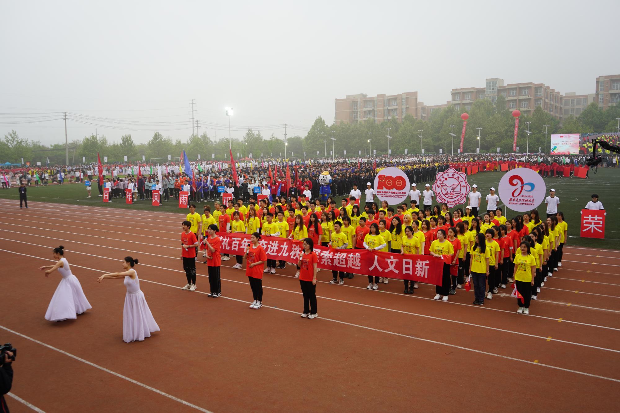 恰逢中国共产党成立100周年,也是西电建校90周年华诞,作为学校体育文化节的首场重大活动,运动会引起了全校师生的广泛关注。为了让更多关心西电的校友和社会各界人士感同身受并参与进来,本次运动会采用无人机航拍等多机位拍摄,通过互联网在线直播,供场外人士实时观看,累计吸引24.5万人次参与。