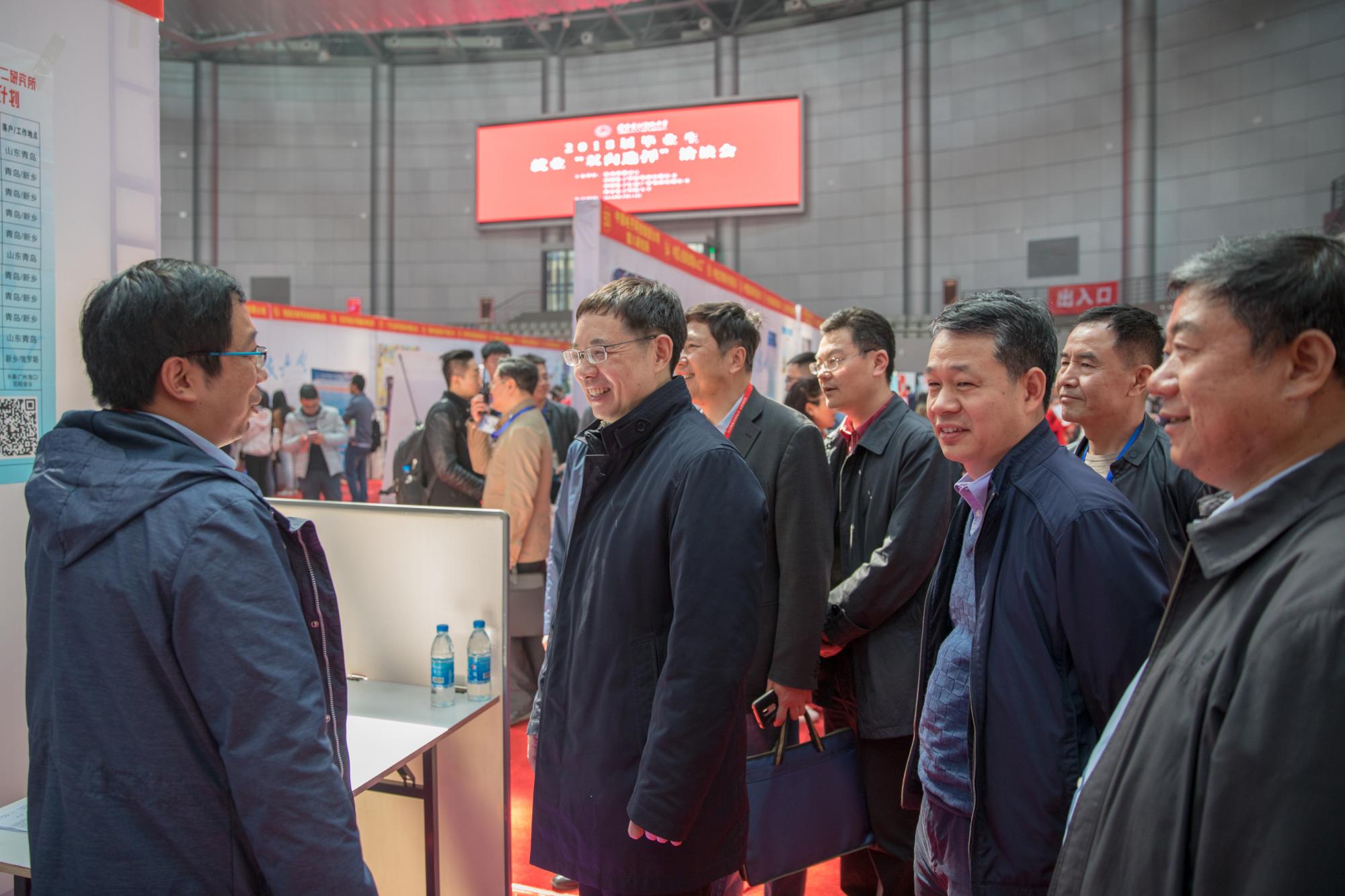 校长杨宗凯,党委副书记杨银堂,副校长蒋舜浩,党委副书记、副校长任小龙,副校长石光明在双选会进行期间前往现场了解各单位招聘情况和各学院毕业生服务工作。