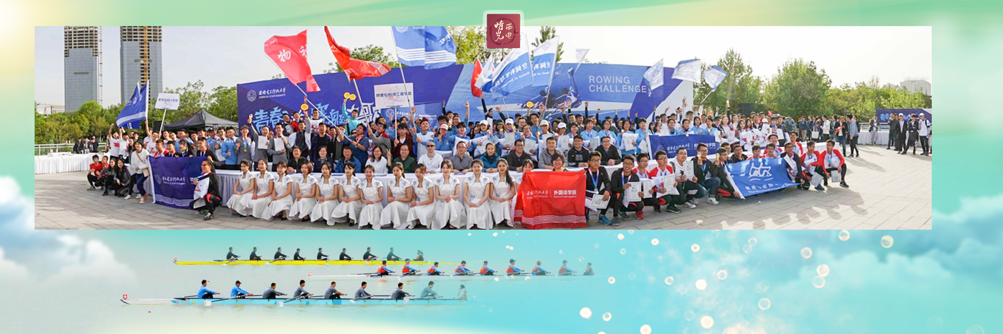 美丽灞河,暖阳融融,微风徐徐,宽阔的水面上数只赛艇如离玄之箭,你追我赶;而池岸的看台上是欢呼加油声此起彼伏...... 4月14日,BB贝博艾弗森原官方网站第三届大学生赛艇挑战赛在西安浐灞生态区灞河西岸滨河公园水域举行,来自西电各学院赛艇协会的17支男子队伍和7支女子队伍在长安塔畔展开激烈角逐。