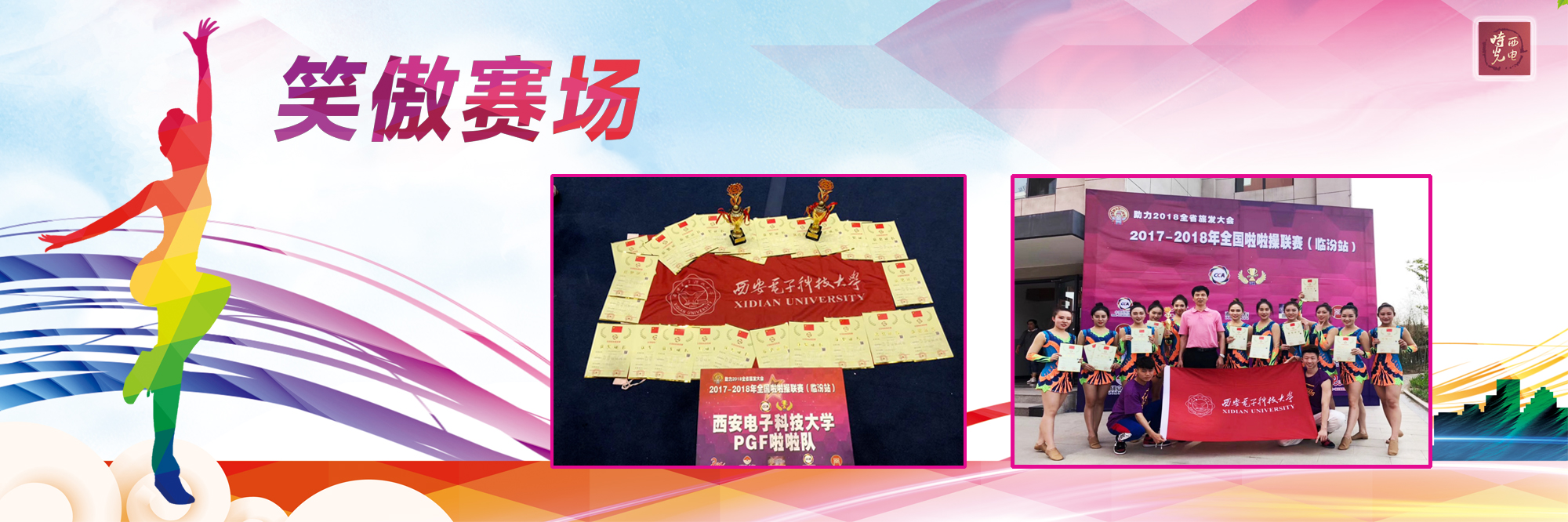 在山西省临汾市举办的2017~2018年全国啦啦操联赛(临汾站)中,西电PGF高水平啦啦操队赢得大学组自选爵士、自选花球套路双冠军,并获得赴欧洲参加国际啦啦操公开赛的资格。