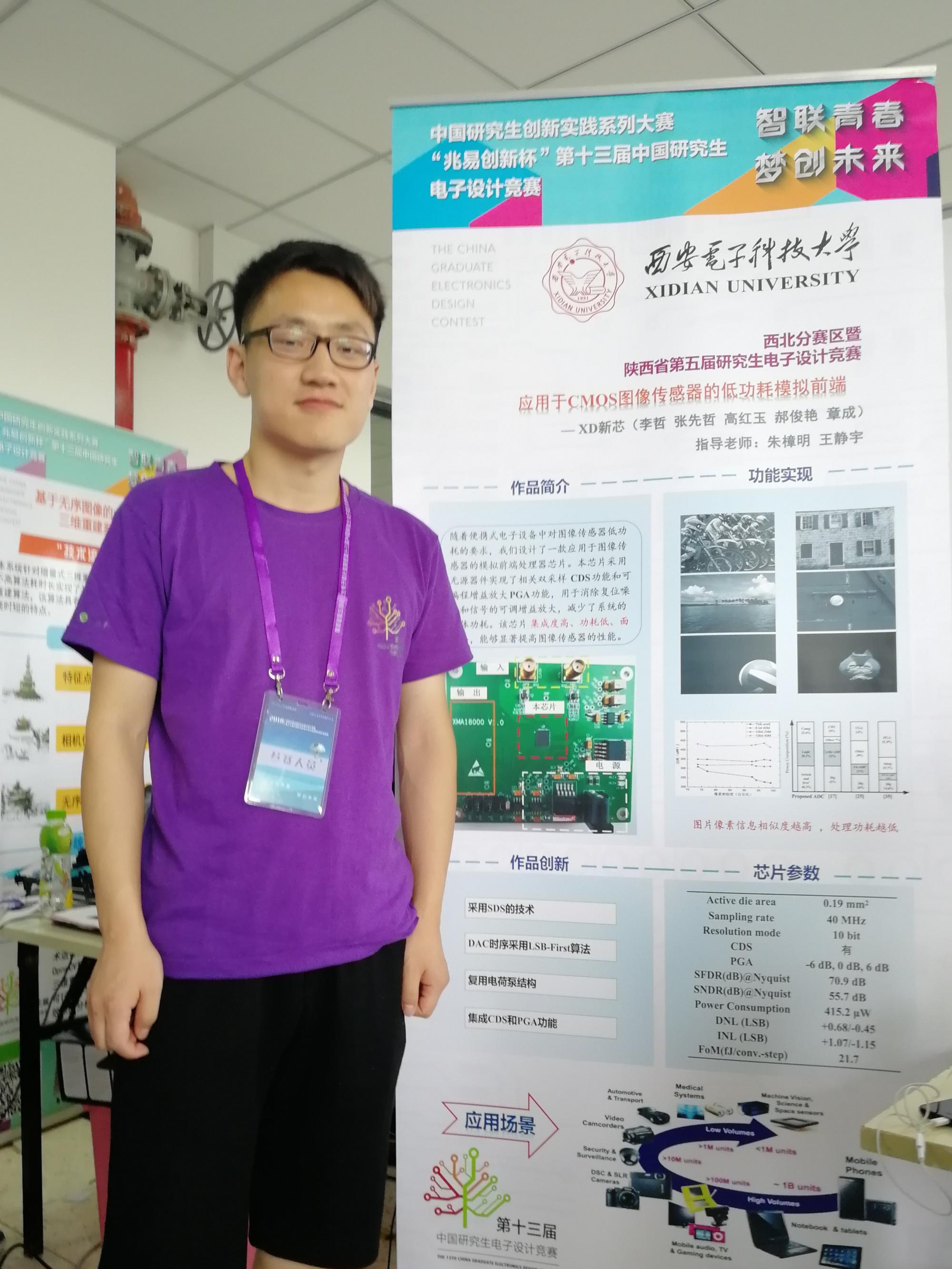 张先哲大二时加入中国共产党,在研究生阶段,他刻苦钻研业务知识,认真学习政治理论,积极参加党支部组织开展的学习教育活动,不断提升自己的政治素质和精神境界。他积极参加学院组织的“听党话,跟党走”主题活动,热情参与“改革开放40周年”学习交流,从习近平总书记给“青年红色筑梦之旅”的回信中汲取力量,对标责任担当,刻苦钻研业务。2018年5月份的中兴事件,给了中国芯片人深深的触动,微电子学院组织的 “我有一颗中国‘芯’”大讨论,让从事高性能模数转换器的研究工作的张先哲深切体会到国外对华芯片封锁的剧痛,使他下定决心要在专业领域有所建树,为中国的芯片事业做出自己的贡献,坚定了在中国梦的伟大奋斗中实现自己价值的人生航向。