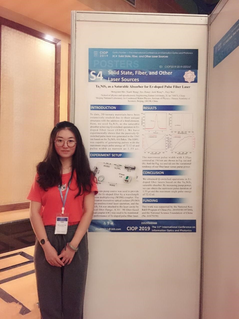 硕士研究生求学期间,马梦媛不仅能够高质量完成导师交代的各项科研任务,还积极参加各种学术活动与课外活动。在研究生二年级期间,马梦媛以第一作者身份发表中科院SCI一区论文两篇,其中一篇被遴选为该期刊的“inside back cover论文”。作为共同作者参与发表两篇SCI论文以及多篇会议论文。正在申请中国发明专利一项,投稿论文一篇。同时,她还协助导师担任本科生助教工作。2019年荣获硕士研究生国家奖学金和校级优秀研究生称号。