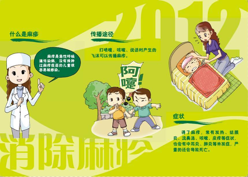 (三)综合预防措施:发现麻疹病人应立即作疫情报告,并招待呼吸道隔离至疹后5天,有并发症者延至10天。凡接触患者的易感儿应检疫3周,并根据情况给予自动免疫或被动免疫,接受免疫制剂者,应延长检疫至4周。在麻疹流行期间,应大力宣传患者不出门,医药送上门,易感儿不患门,集体机构加强晨间检查,对可疑者应隔离观察。