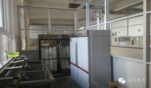 √ 备餐间用铝合金夹成独立的空间,内装紫外线消毒灯和洗手池
