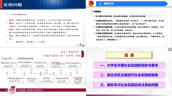 党建引领,以党史学习教育助推初心路上再出发。百年征程波澜壮阔,百年初心历久弥坚。为学习贯彻习近平总书记在庆祝中国共产党成立100周年大会上的重要讲话精神,按照“小我融入大我,青春献给祖国”党史学习教育实践活动要求,各学院建立社会实践团队临时团支部,全部团队建立临时党课学习小组,就地取材开展至少一次党建活动,因势利导进行入党动员,党员、预备党员可进一步开展重温入党誓词党日活动。围绕《中国共产党简史》《习近平与大学生朋友们》《光辉历程》等推荐书目与实践地历史文化背景素材开展“行前读书会”,团队成员结合实践主题与读书体会开展深入思考与讨论,并积极提出问题,以问题牵引进一步明确实践内容,细化实践方案,在目标驱动下更有针对性得寻找答案。