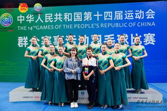 西电大学生礼仪队承担了本次比赛的颁奖礼仪服务工作,选拔出13名优秀礼仪志愿者担任颁奖礼仪,为十四运贡献了西电的青年力量,展现了西电学子的青春风采。