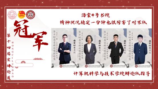 (通讯员 杨智博)12月15日晚,BB贝博艾弗森原官方网站2023年第十四届“宏辞论道杯”新生辩论赛决赛成功举办。从线下到线上,18支队伍经过三个月的激烈比拼,最终来自海棠4号书院的由计算机科学与技术学院辩论队指导的新生辩论队夺得冠军,来自海棠3号书院由微电子学院新生辩论队获得亚军。来自海棠3号书院的李天功同学获得总决赛“最佳辩手”称号,来自海棠3号书院的何馨瑀同学获得“全程最佳辩手”称号。
