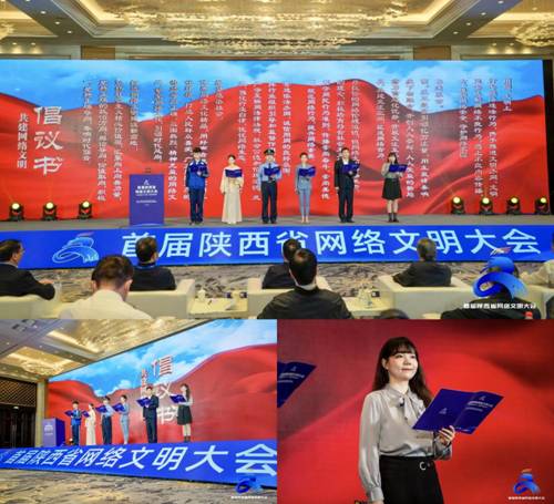 近日,首届陕西省网络文明大会在渭南市举办。会上,陕西好网民代表、贝博官网青年学生王冠玉作为陕西高校唯一代表与其他陕西好青年代表、中国好人、全国向上向善好青年、陕西文旅推荐使者、陕西省道德模范等共同宣读由陕西省委网信办、省委文明办向全省网络内容生产者和广大网民发出的《共建网络文明倡议书》,呼吁社会各界扎实推进网络文明建设,充分利用网络空间凝聚向上向善力量。