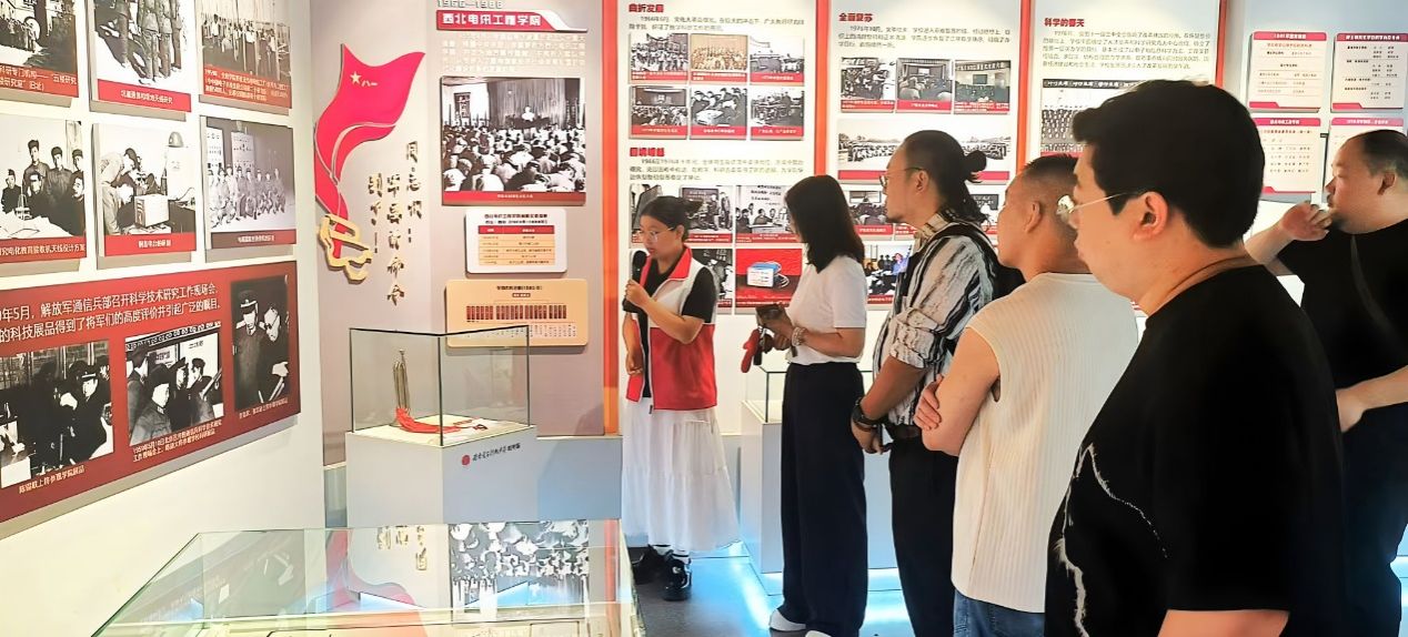 排练开始前,西安话剧院专业指导团队和全体演职人员在2023级本科生王茹的讲解中参观贝博官网校史馆。漫步西电校史长廊,团队成员不仅深入了解西电红色革命发展历史,更触摸到一代代科学家、教育家们“功成不必在我,功成必定有我”的奋斗温度,为舞台剧的排练工作奠定了浓厚的情感基调和鲜明的西电底色。
