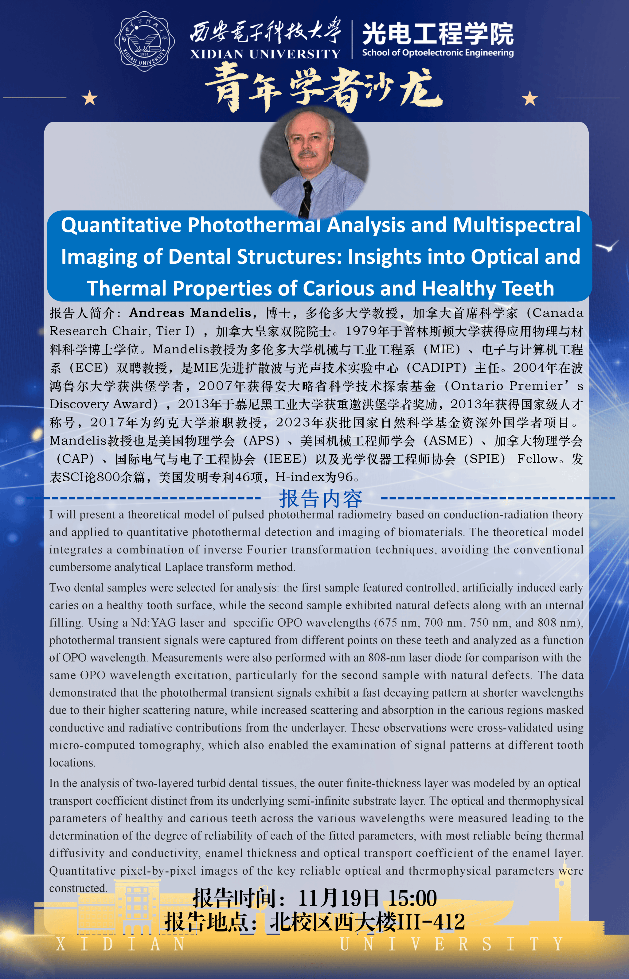报告人:Andreas Mandelis 教授